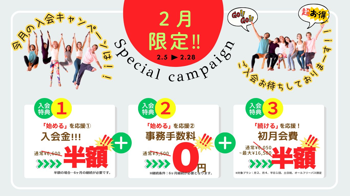 ※月会費割引等の適用は、体験後当日スタジオでの入会が条件となります。