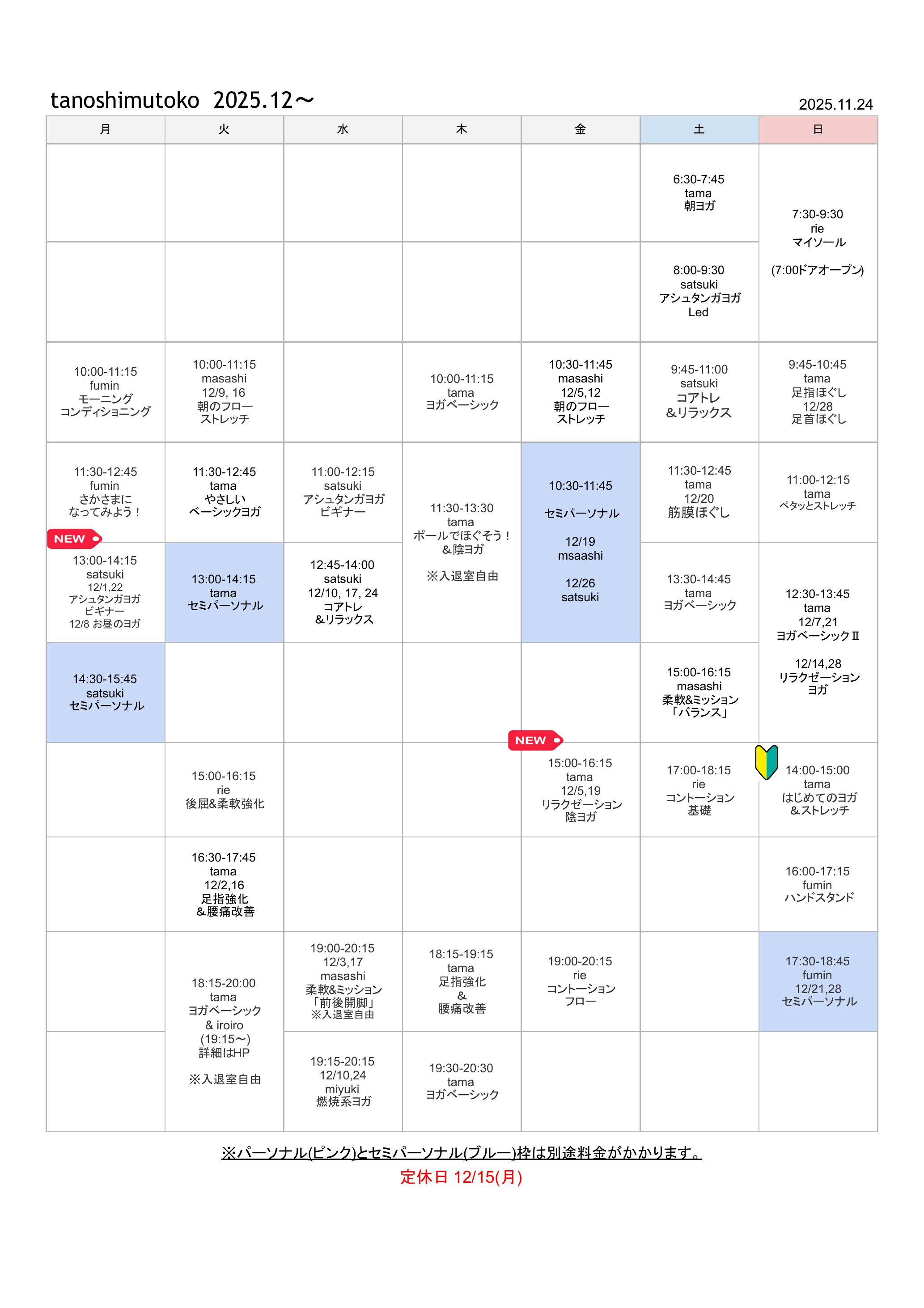 - 7:30~9:30 sastsuki マイソール ※それ以降はお休みとなります。