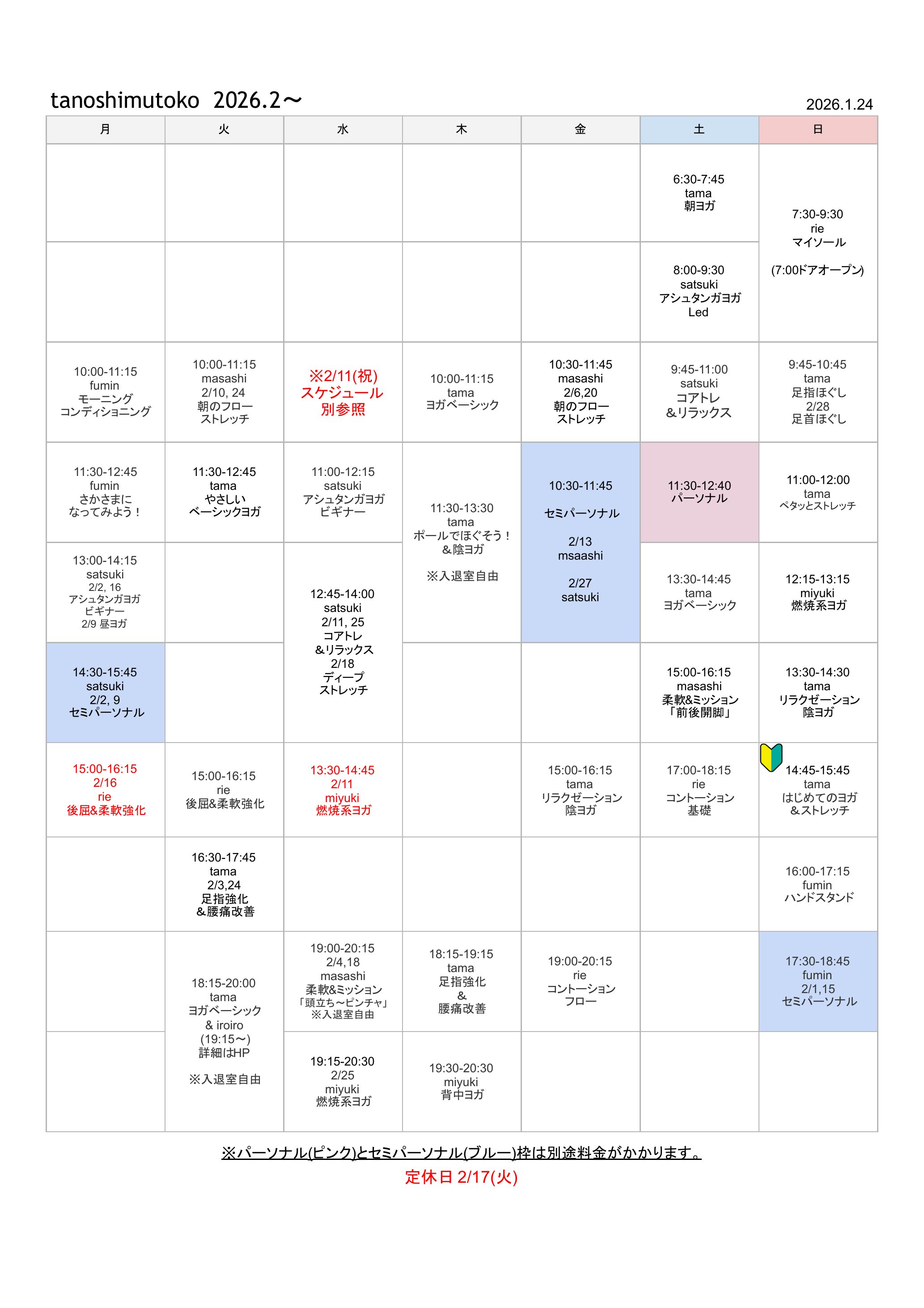 - 11:15-12:30 satsuki 肩甲骨ヨガ